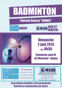 La fin de saison approche, pour faire plaisir à nos jeunes nous organisons avec le club D’Augny un tournoi jeunes qui doit permettre à nos jeunes ( surtout ceux qui n’ont pas participé encore à un tournoi ) de remporter une médaille ou une coupe.