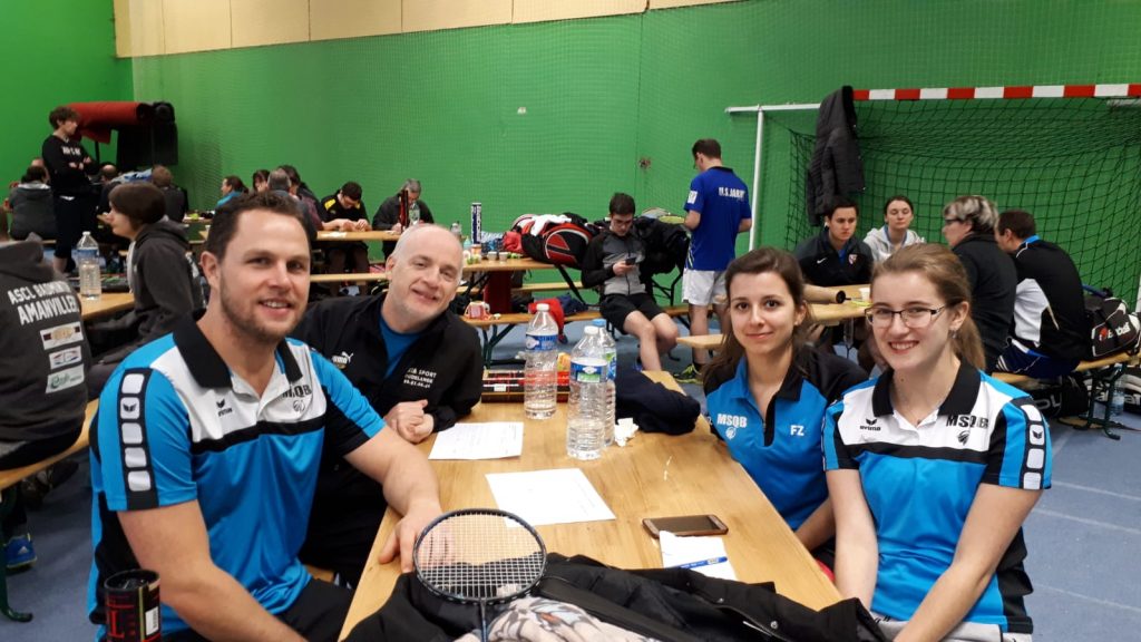La première rencontre contre SARREGUEMINES commence bien par nos deux mixtes (Eric/Claire, et Manu/Camille) qui remportent leurs matchs.
