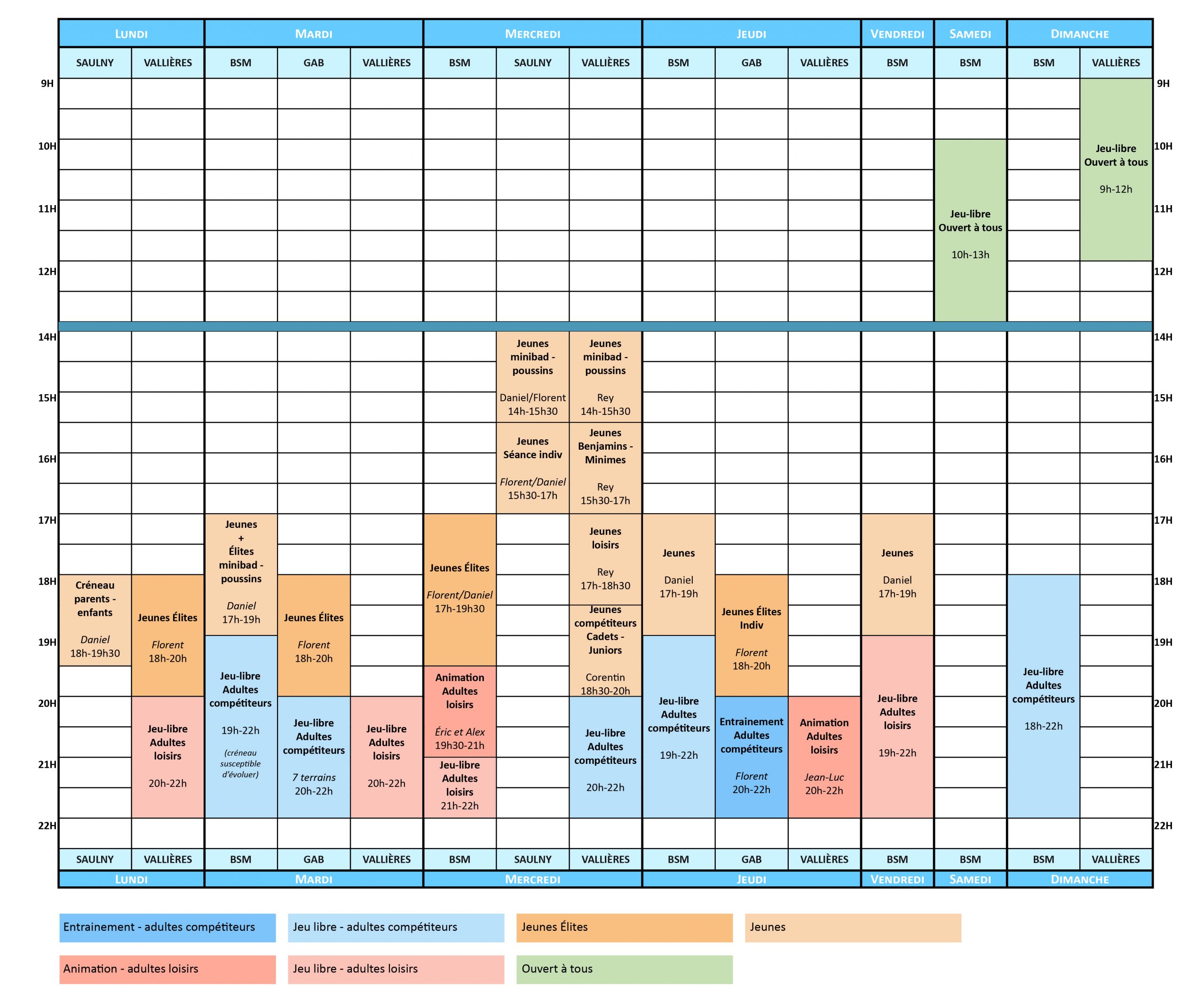 Attention ! Tous les créneaux de jeu libre sont soumis à un ouvreur – Bien vérifier que le créneau est vert avant de vous déplacer